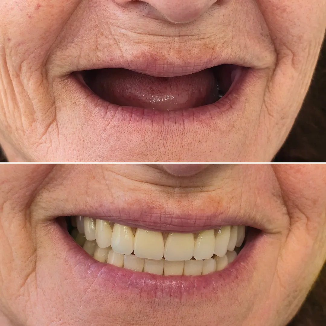 Monica, de 53 años, batalló con su falta de dientes y con prótesis removibles durante años. ¡Ahora irradia confianza con su nueva sonrisa completa!